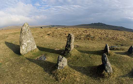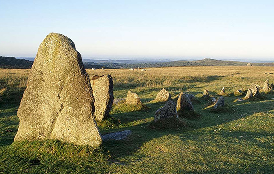The group of monuments at Merrivale is one of the finest on Dartmoor: side by side here are the remains of a Bronze Age settlement and a complex of ritual sites.