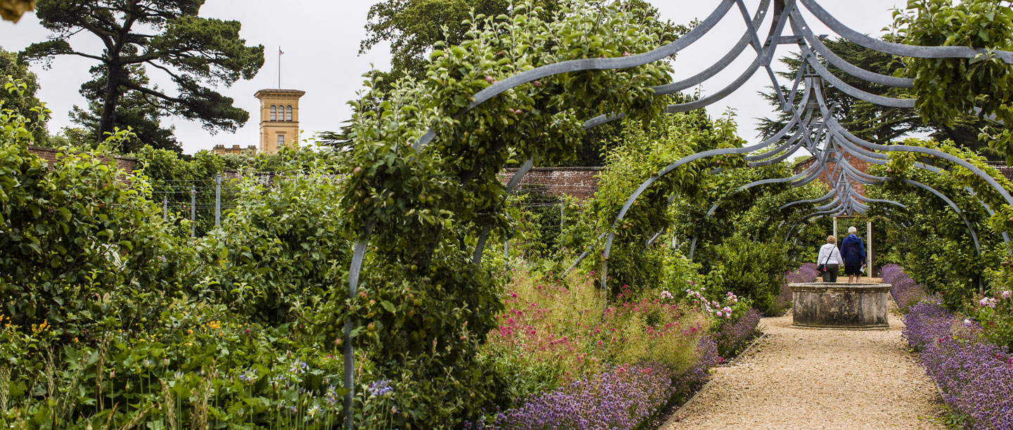Restored under English Heritage’s Contemporary Heritage Garden Scheme, the walled garden was opened to visitors in the year 2000. It was designed by award winning garden designer Rupert Golby to reflect Queen Victoria’s use of the area as a cut flower garden with trained fruit trees. Rupert selected plants which had royal connections within their name such as Victoria plum and Rhubarb ‘Prince Albert’, and also included V and A motifs on some of the garden’s features. This reflects similar motifs you can see in decoration inside the house.