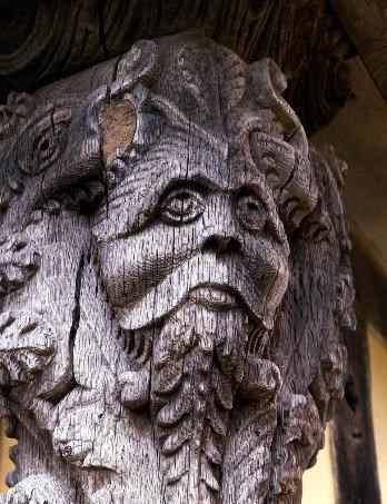 - The beautifully carved overmantel within the solar