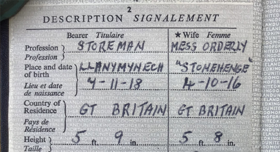 Pictured above is a copy of Ethel Thomas’s passport, listing Stonehenge as her place of birth. Fargo Cottages (initially known as Virgo Cottages), were built in around 1850 and were demolished in 1918 when the Stonehenge aerodrome was expanded.