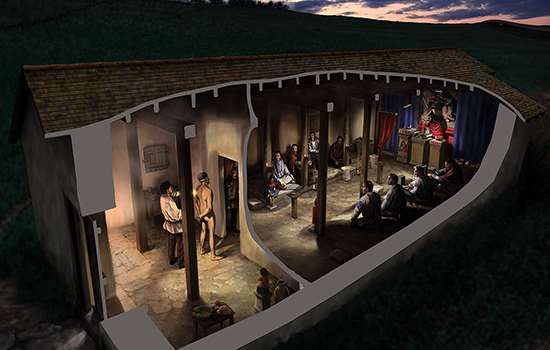 Visible today only as earthworks, Carrawburgh – known to the Romans as Brocolitia – was one of 16 large forts along the 73-mile long Hadrian’s Wall.