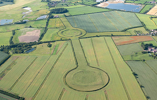 The three henges at Thornborough were aligned along a north-west to south-east axis, stretching out over a mile. Each one is about 250 metres in diameter.