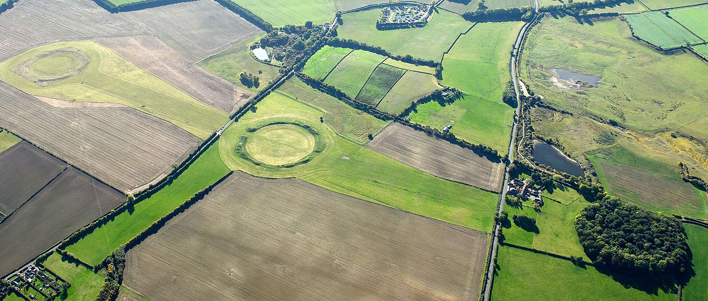 The complex of monuments at Thornborough does not occur in isolation. It is part of a more extensive cluster of Neolithic and early Bronze Age monuments found along a 7½ mile (12km) stretch of the river Ure, parallel with the modern A1 road. The Ure was probably a key route between the central Pennine Hills to the west and Yorkshire’s low-lying vales to the east.
