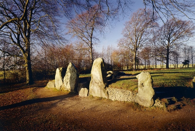 Human remains found on the site indicate that 14 people were interred in an earlier burial structure between 3590 and 3550 BC. Between 3460 and 3400 BC a second far larger barrow was constructed on top. It is the ruins of this that can be explored by visitors to the site today.