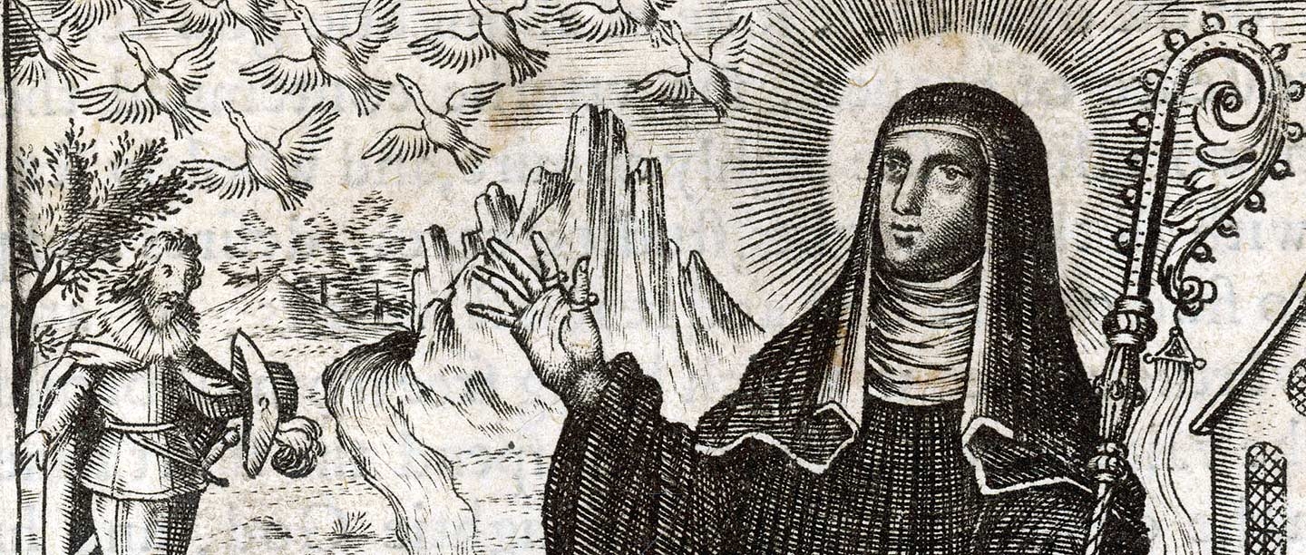 At about this time a Life of St Milburga was written, probably by Goscelin of Saint-Bertin, a monk renowned for his hagiographies (idealised saints’ lives). This recounts how Christ, working through the saint, restored a dead man to life; and how thanks to Milburga’s prayers, geese which were eating the abbey’s corn were banished, never to return – a miracle also attributed to other female saints of the Anglo-Saxon era, including St Hild of Whitby. The Life is also the source for the Testament of St Milburga.