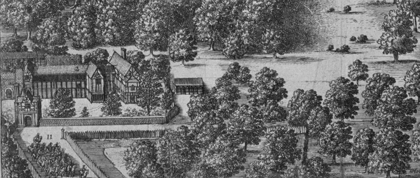 The priory and its core estate were let for 21 years to William Skeffington, but the reversion or freehold was sold in 1540 to William Whorwood, the Crown’s Solicitor General. Skeffington apparently resided there, and was buried in nearby Tong church in 1550. It was probably him who dismantled the priory buildings and built the timber-framed manor house which appears in later views. Skeffington’s widow, Joan, married Edward Giffard, the second son of Sir Thomas Giffard, conveying the estate to him. At some point, the Giffards must have bought the freehold. It was Edward Giffard’s son, John, who built Boscobel House, as a subsidiary residence or lodge, about a mile away, in about 1620–30.