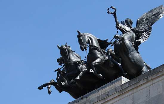 On the corner of London's Hyde Park, Apsley House was a city home to the Duke of Wellington. Across the road, the well-known landmark of Wellington Arch houses an exhibition on Wellington's life.