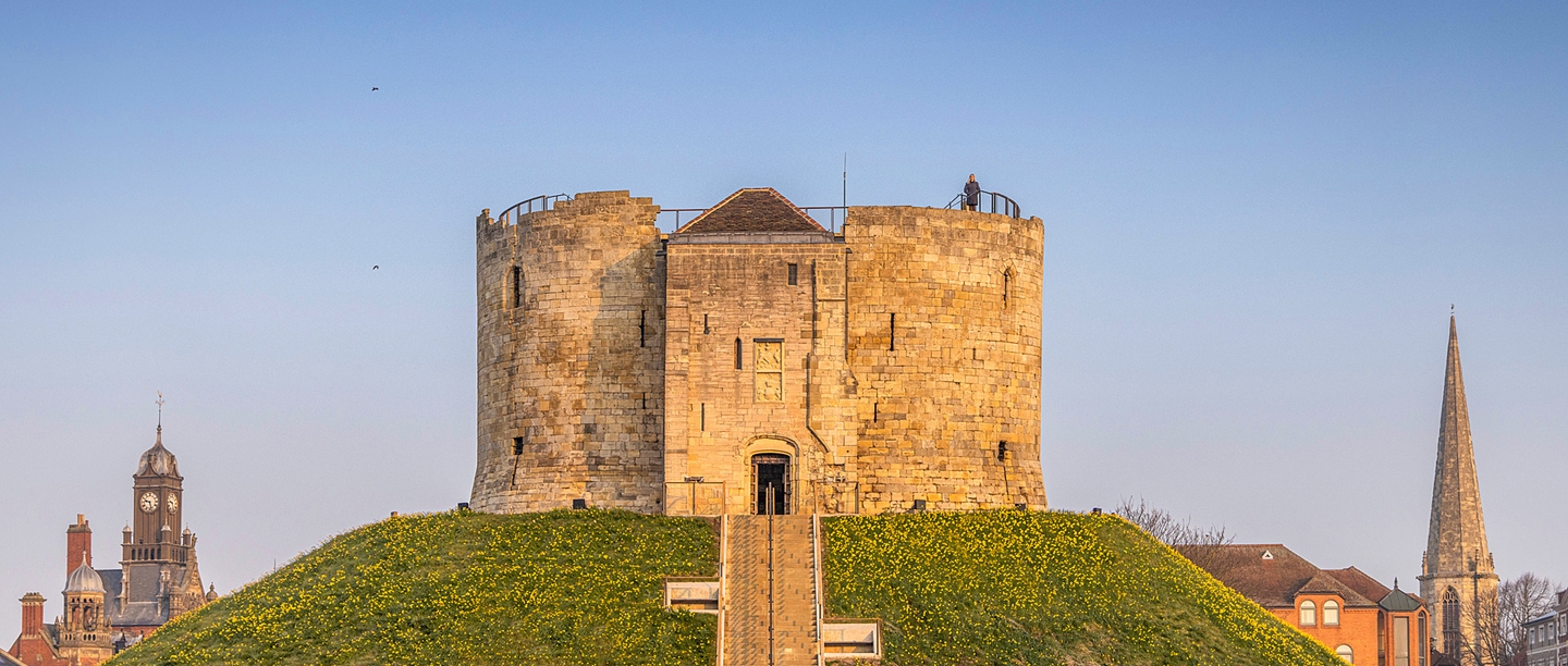 Today at Clifford's Tower, a new roof deck gives unrivalled 360° views over the city's historic skyline, with its medieval buildings and famous Minster. Inside, you and your guests can access the tower's new walkways and staircases which have opened up parts of the tower that have been off-limits for centuries. Reopened on 2 April 2022 following a major £5 million project to conserve and radically transform the interior of the 800-year-old landmark, Clifford's Tower will certainly impress.
